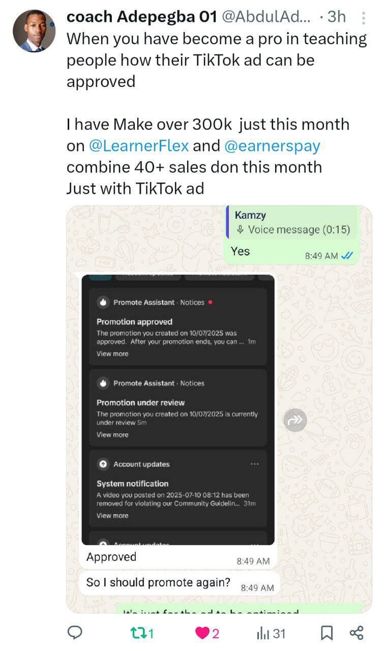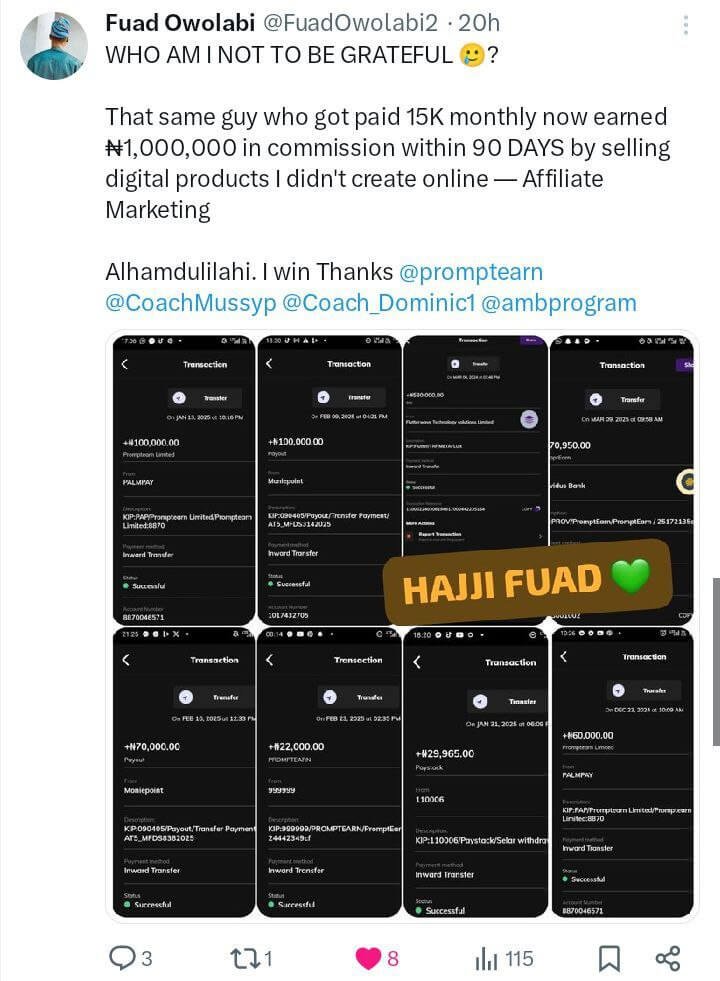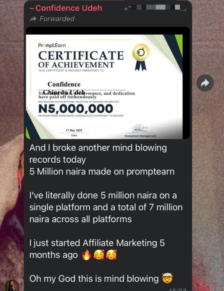 Soon, many students who bought the AMB course started using it to make a lot of money. For example, Egbeji Nmesoma made over N5 million. Many others made N1 million to N6 million a year. Between March 2024 and April 2025, I used the system in the AMB course to make over N8 million.